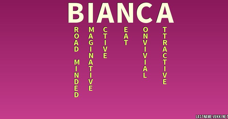 Is fit nameYou can give to your baby with complacency. The Tragedy of Othello Mistress of Cassio. The name Bianka is primarily a female name of Italian origin that means White. The name Bianca is a White Fair name. But it has no meaning in Hebrew. As Bianca you are spontaneous happy-go-lucky and you enjoy the company of others--the more the merrier. The name Bianca evokes dependability assertiveness and grace.